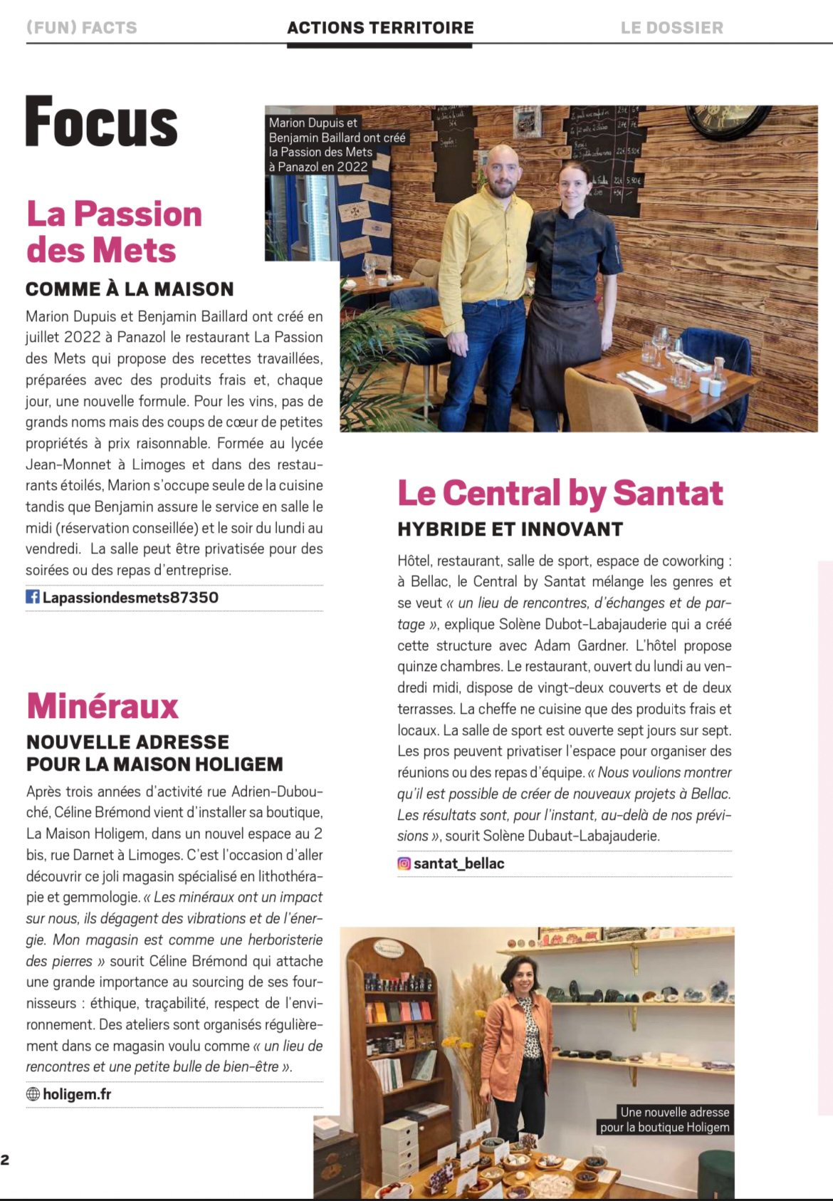 À l’occasion de l’ouverture de la Maison HoliGem, Les magazines Vivre Limoges ainsi que le journal de la CCI sont venus me rendre visite.